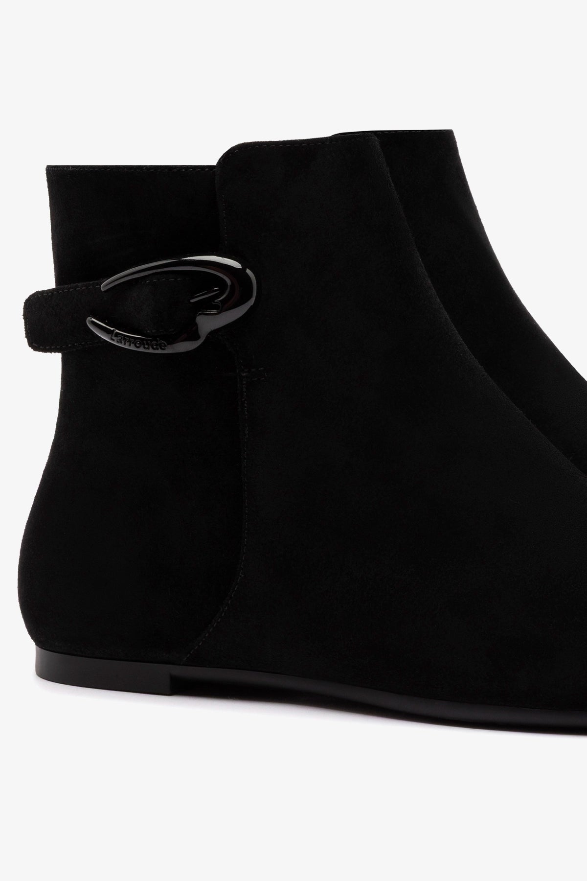 Versatile, minimal, and made to move with you, this sleek ankle bootie is designed for ease, with a slip-on silhouette and a chic, adjustable tab closure for a customized fit. Set on a comfortable flat sole, it’s equal parts practical and polished.