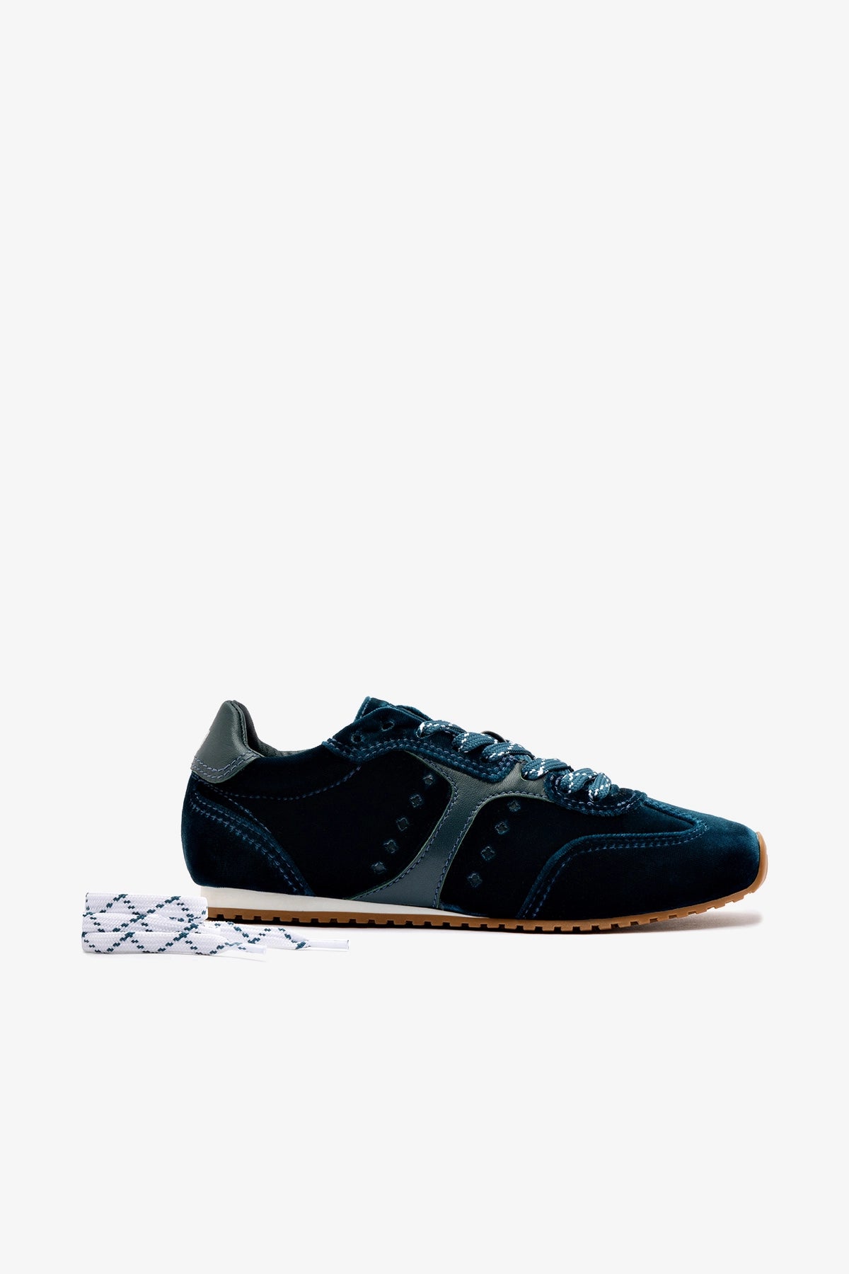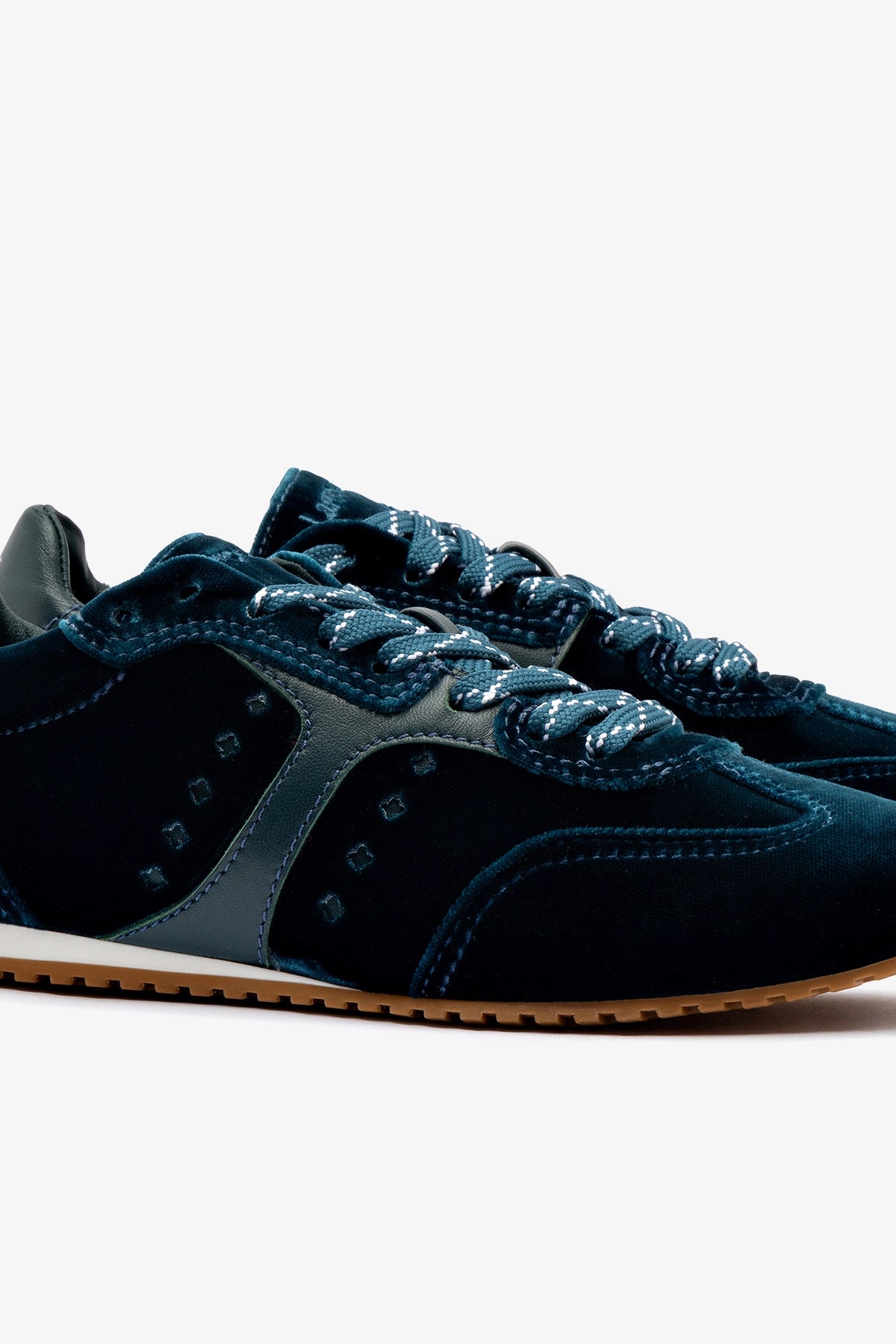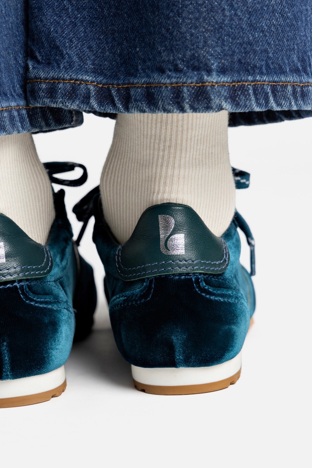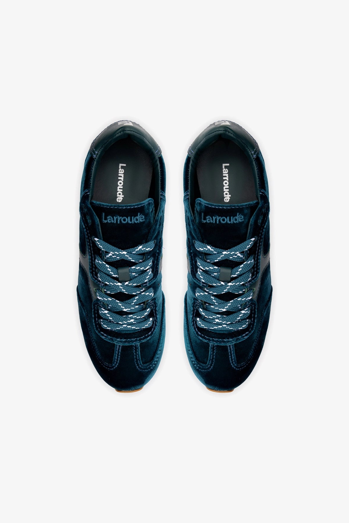 We're in our athletic era. Introducing the very first sneaker by Larroudé, the Stella blends functionality and form with fashion, in a Fall-ready premium Italian velvet that you can wear with anything from day dresses and denim to workout gear at the gym.