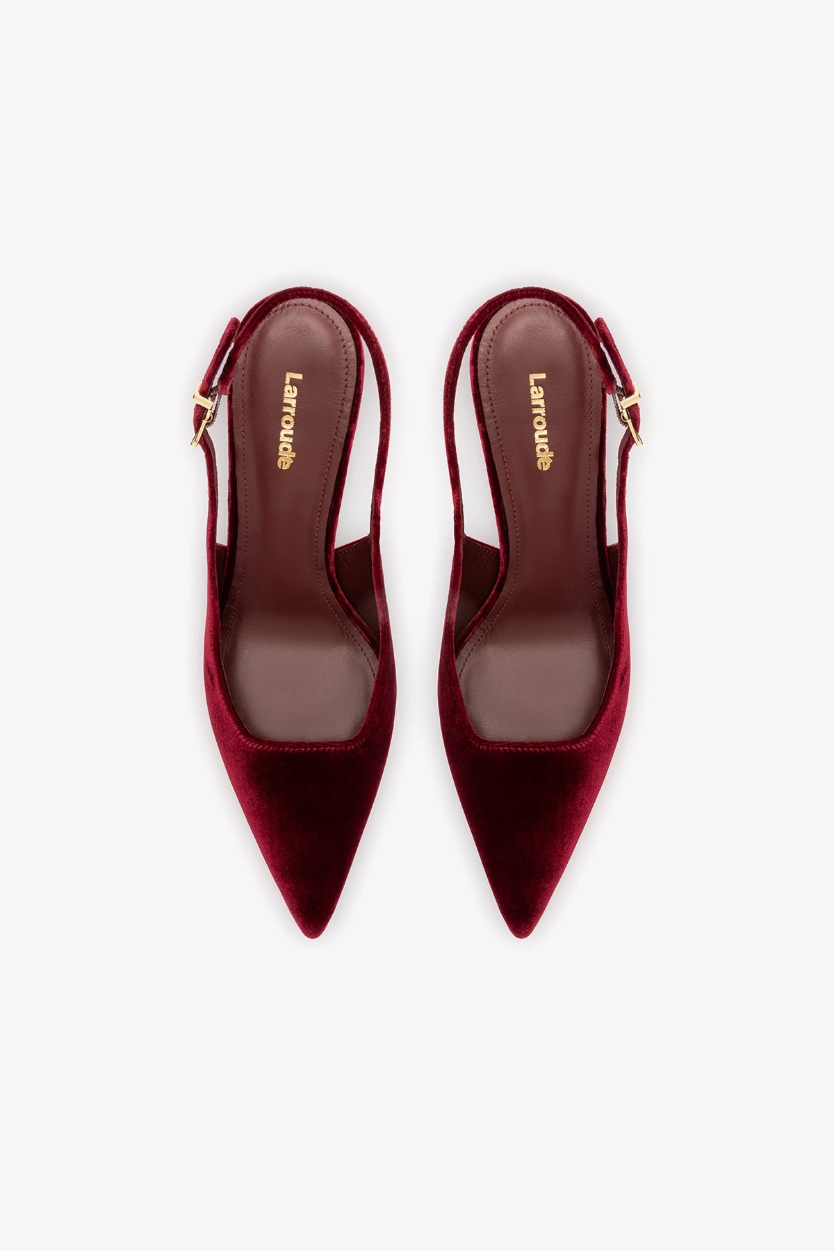 The Kaitlan Pump returns for the holidays, reimagined in rich wine velvet with a gold-painted heel—an instant statement that’s as timeless as it is striking. With its sleek slingback silhouette and stiletto heel, it defines effortless allure, made to take you from intimate dinners to midnight toasts in style.