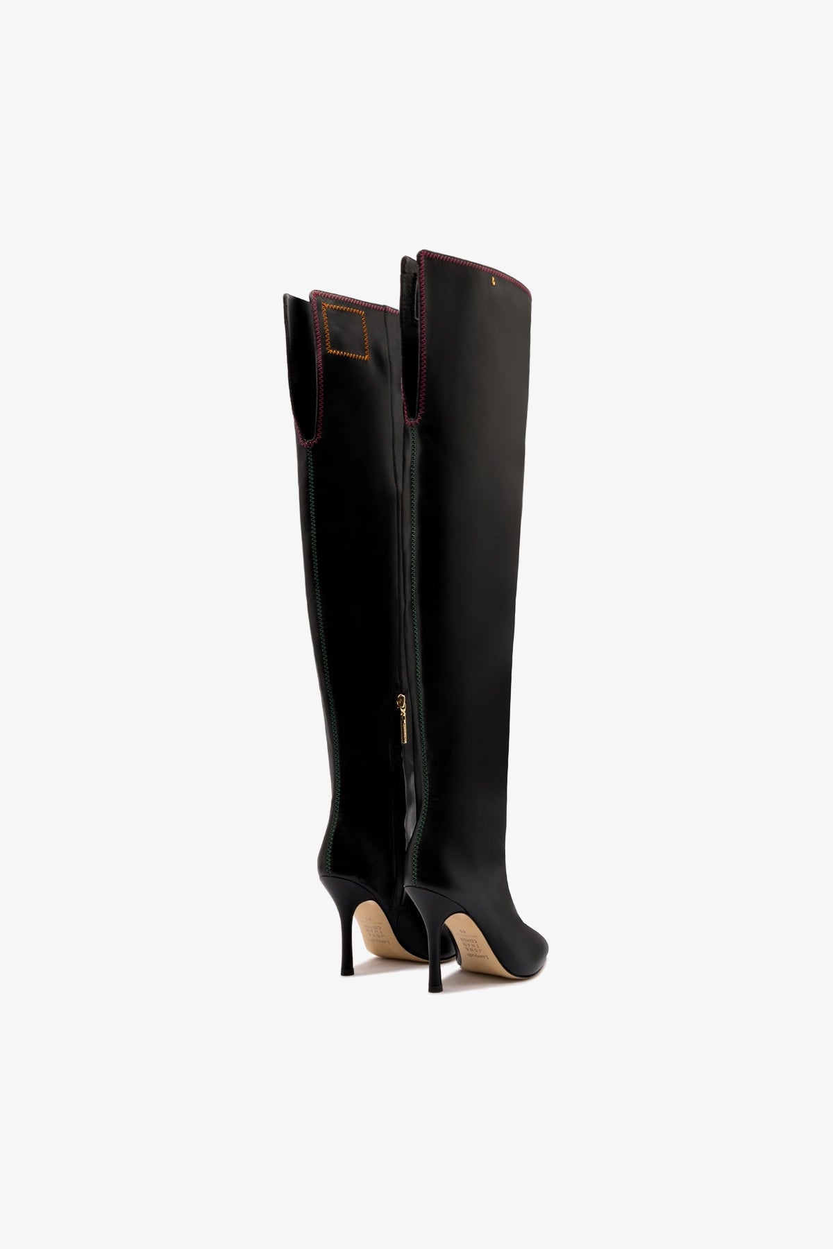 As a new chapter in our ongoing collaboration with Jonathan Cohen, the Zig Boot Hi celebrates craftsmanship through statement details. Designed with an over-the-knee silhouette and a sleek stiletto heel, this striking style is finished with vibrant zig-zag stitching—an unmistakable signature of the collection that adds a bold, graphic touch.