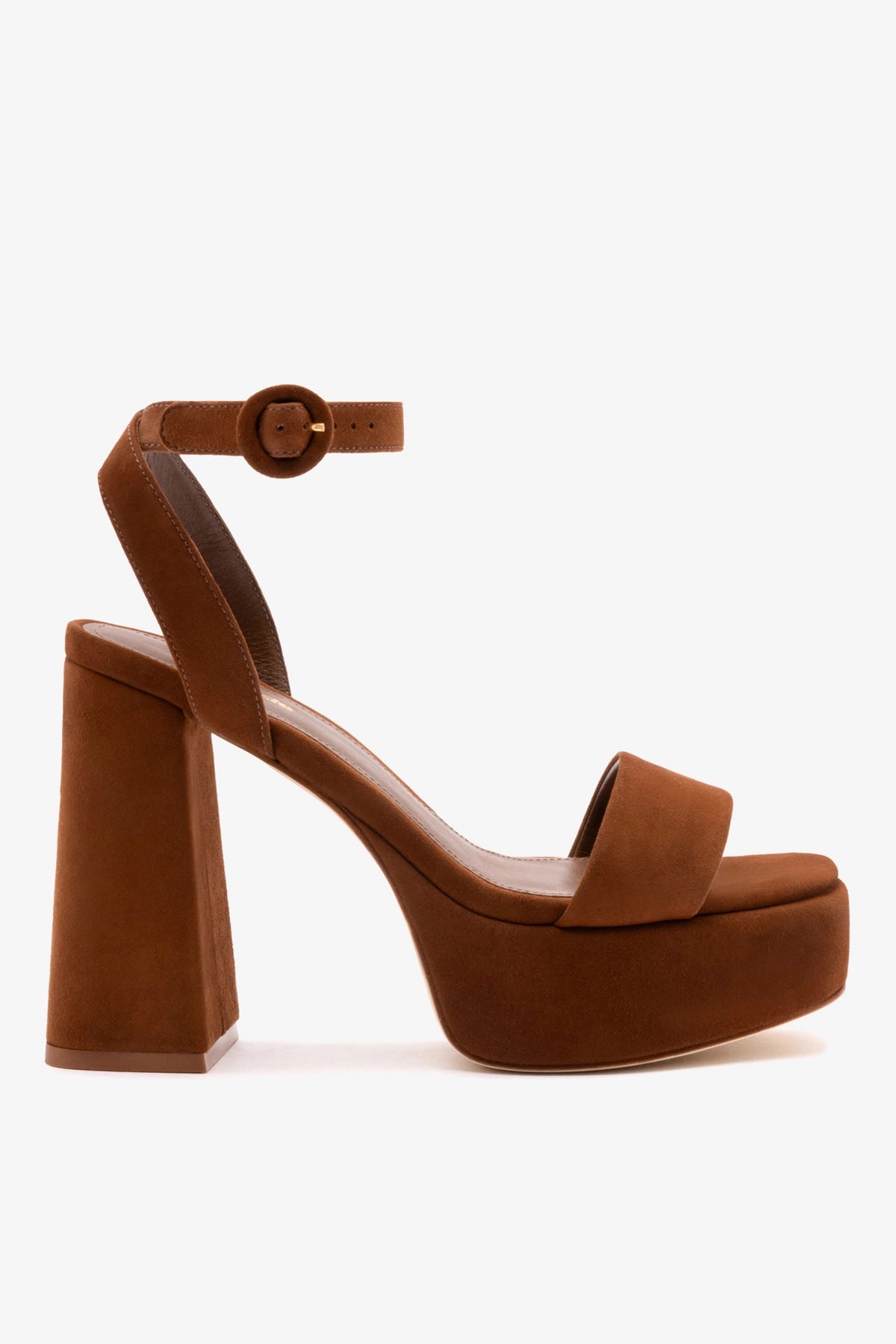 Our iconic Dolly style is back in an irresistible Fall version. Crafted from rich suede, this sandal is a statement of power and style. With its towering block heel and bold platform, it elevates your look and your confidence.