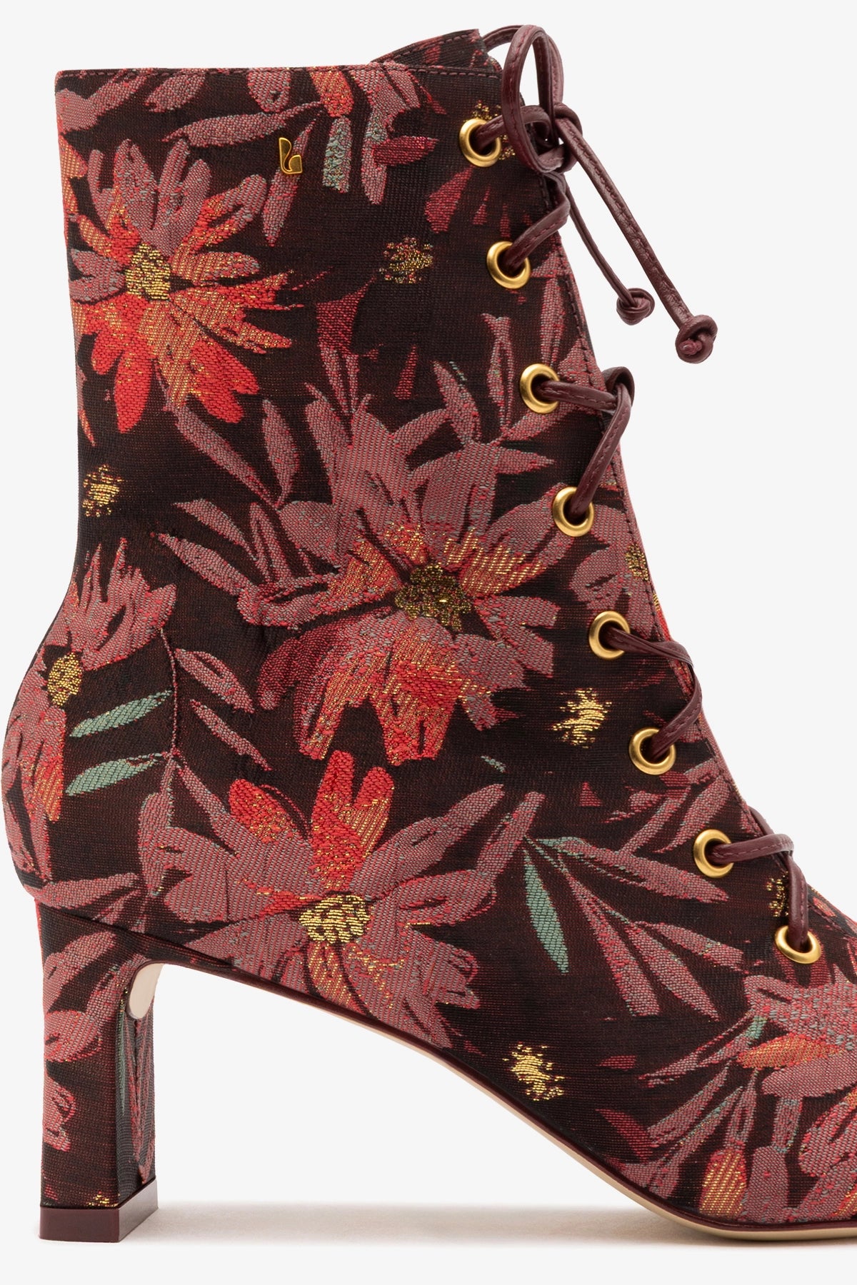 Larroudé x Markarian Alexis Boot In Floral Embroidery Burgundy Fabric