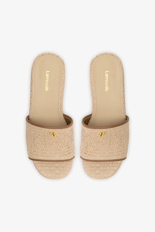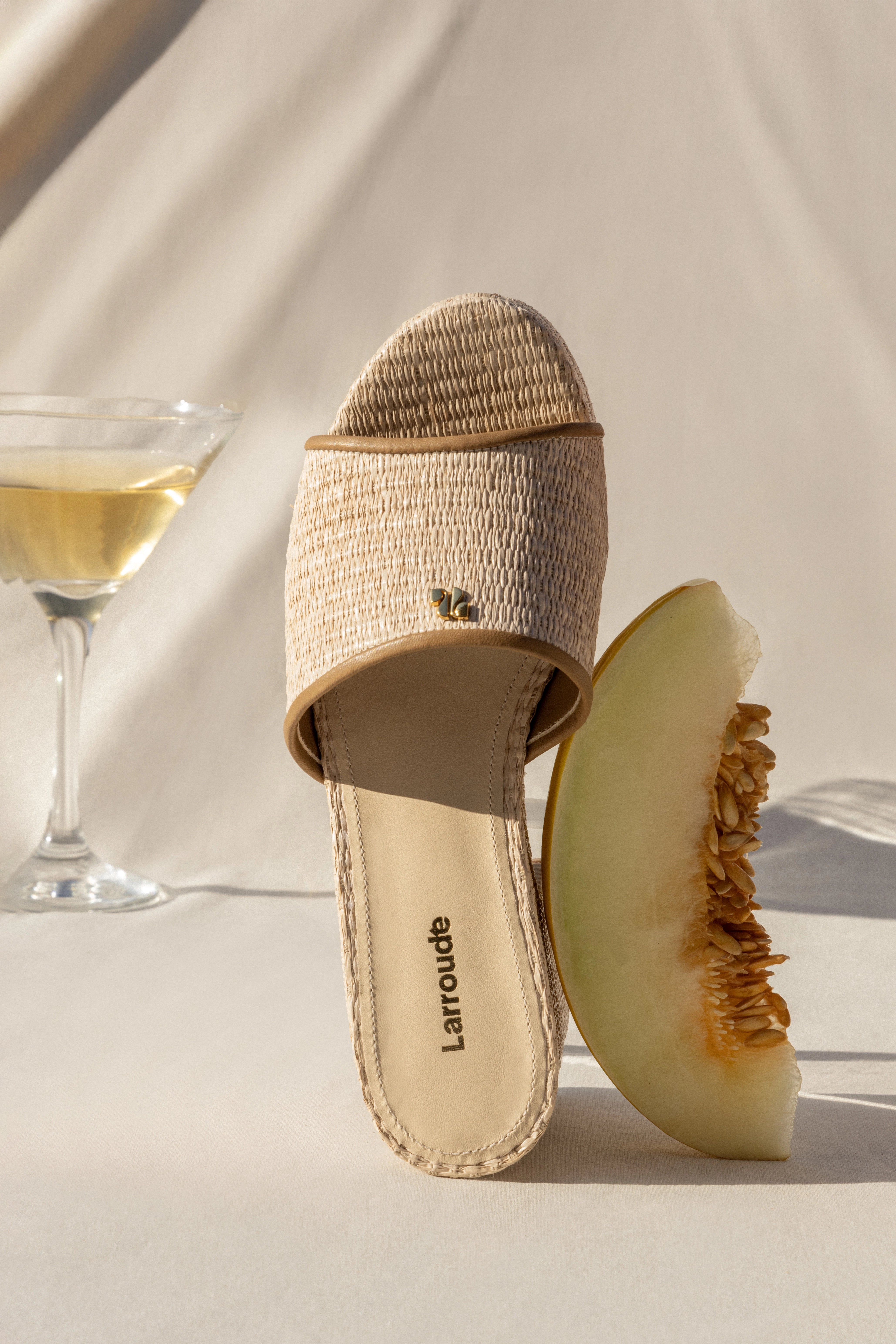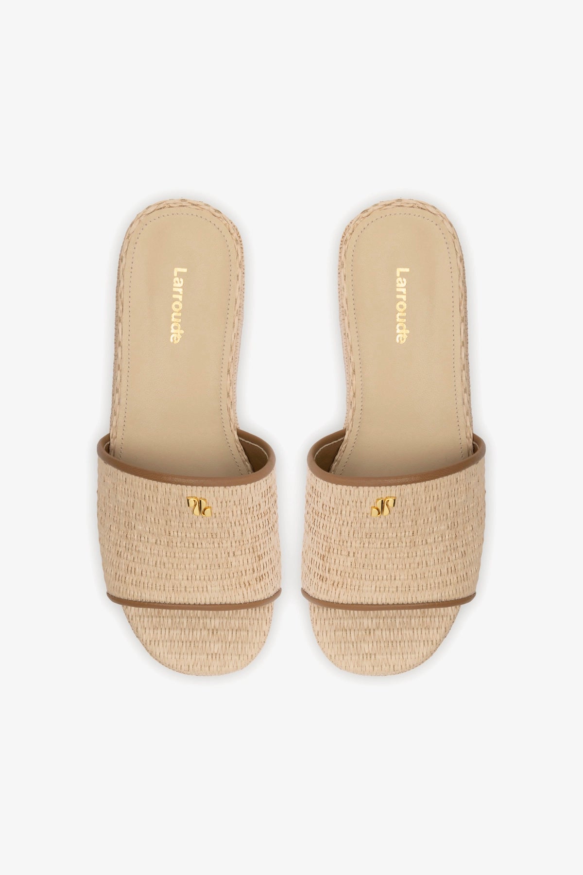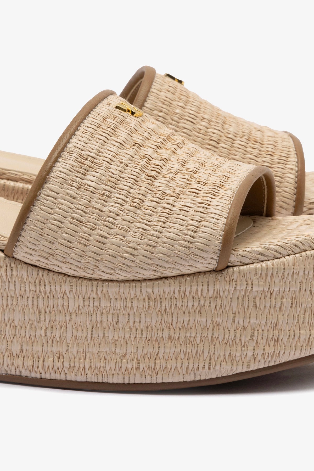 Alex Flatform Mule In Natural Raffia and Hazelnut Trimming