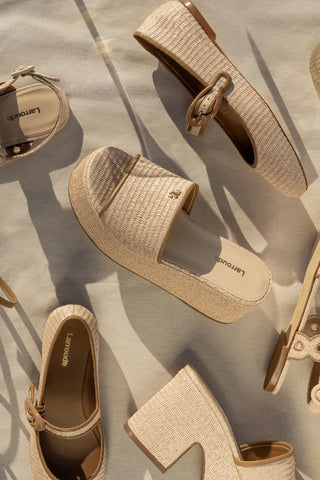 With a playful sensibility, we designed the Alex Sandal as Summer's ode to ease. In a neutral raffia and a flatform base, this slide will bring an element of whimsy to any outfit.