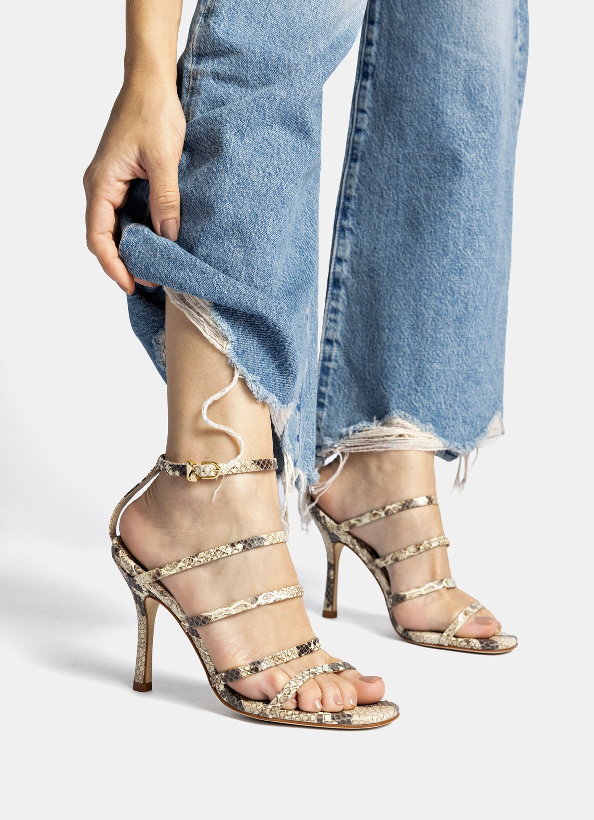 The Sasha brings a striking, sculptural feel to a classic high-heel silhouette. Designed with multiple slim straps and a delicate ankle closure, it frames the foot with clean, modern lines.