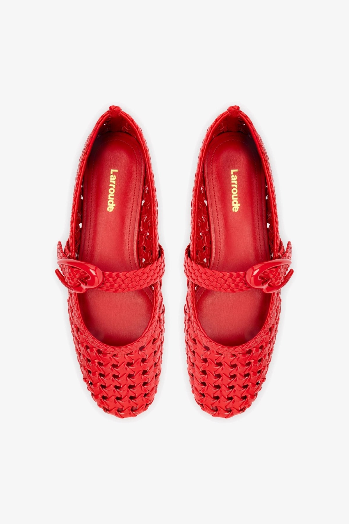 Our most comfortable flat yet, our newest Verona mary-jane takes cues from a Shakespearean romance. In an intricate woven macrame—and a sweet new heart buckle at the ankle strap—this rich scarlet pair is a breath of fresh air this Spring.