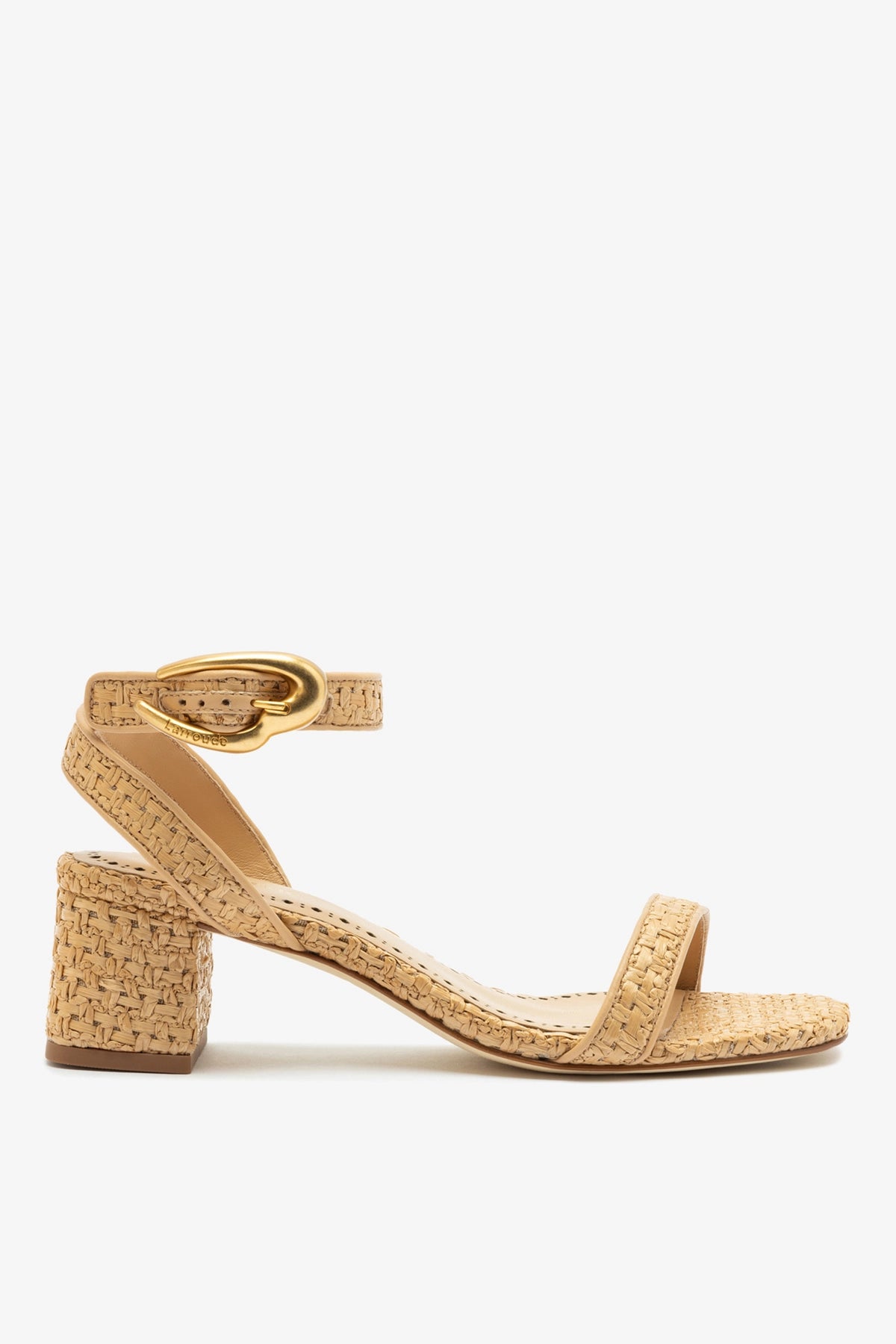 Verona Block Sandal In Beige Leather and Natural Raffia