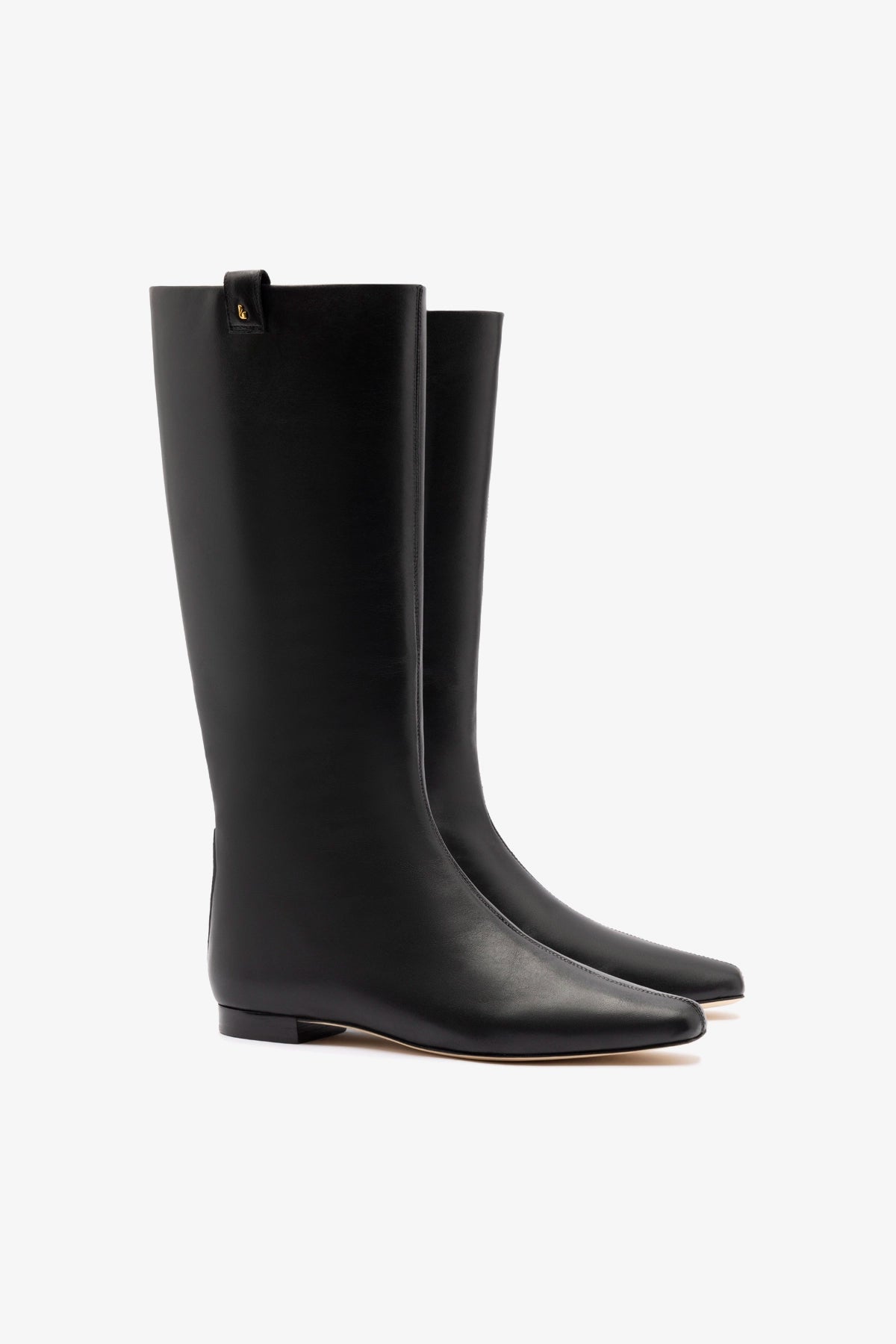 Sleek, refined, and endlessly versatile, this classic high boot is the ultimate wardrobe staple. Crafted in a black leather with a flattering, elongating silhouette, it has a timeless shape with just the right amount of edge—the kind of boot you’ll reach for season after season.