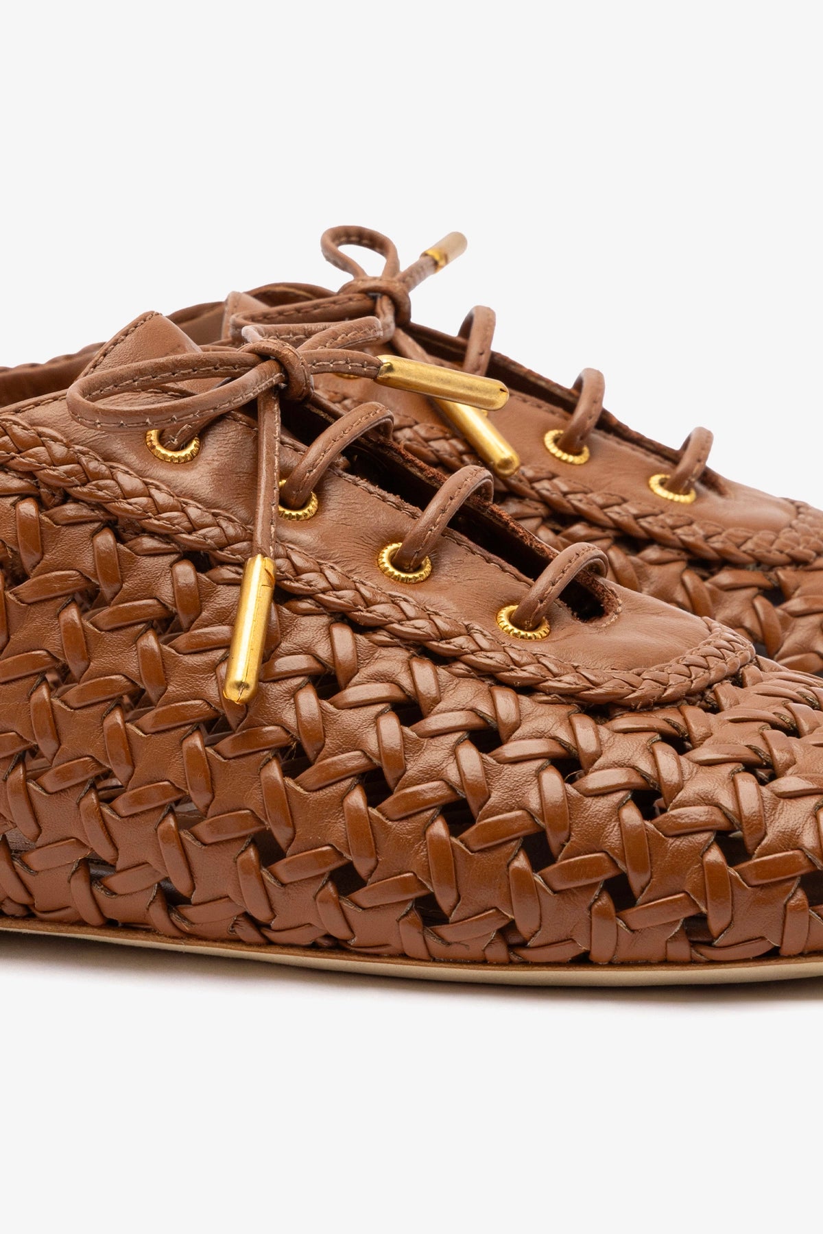 Inspired by the rising jazz shoe trend, the Liza brings the lightness and minimalist aesthetic of dance classics into everyday wear. Now in a handwoven macramé leather with delicate laces, it blends ultimate comfort with a cool, contemporary design.