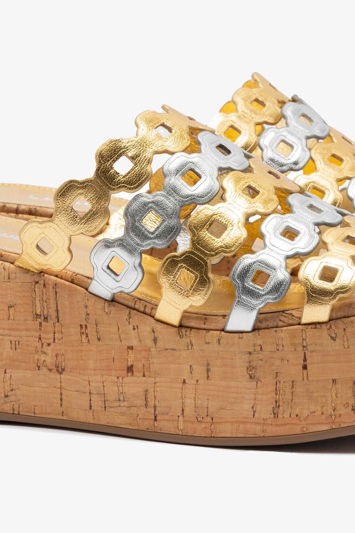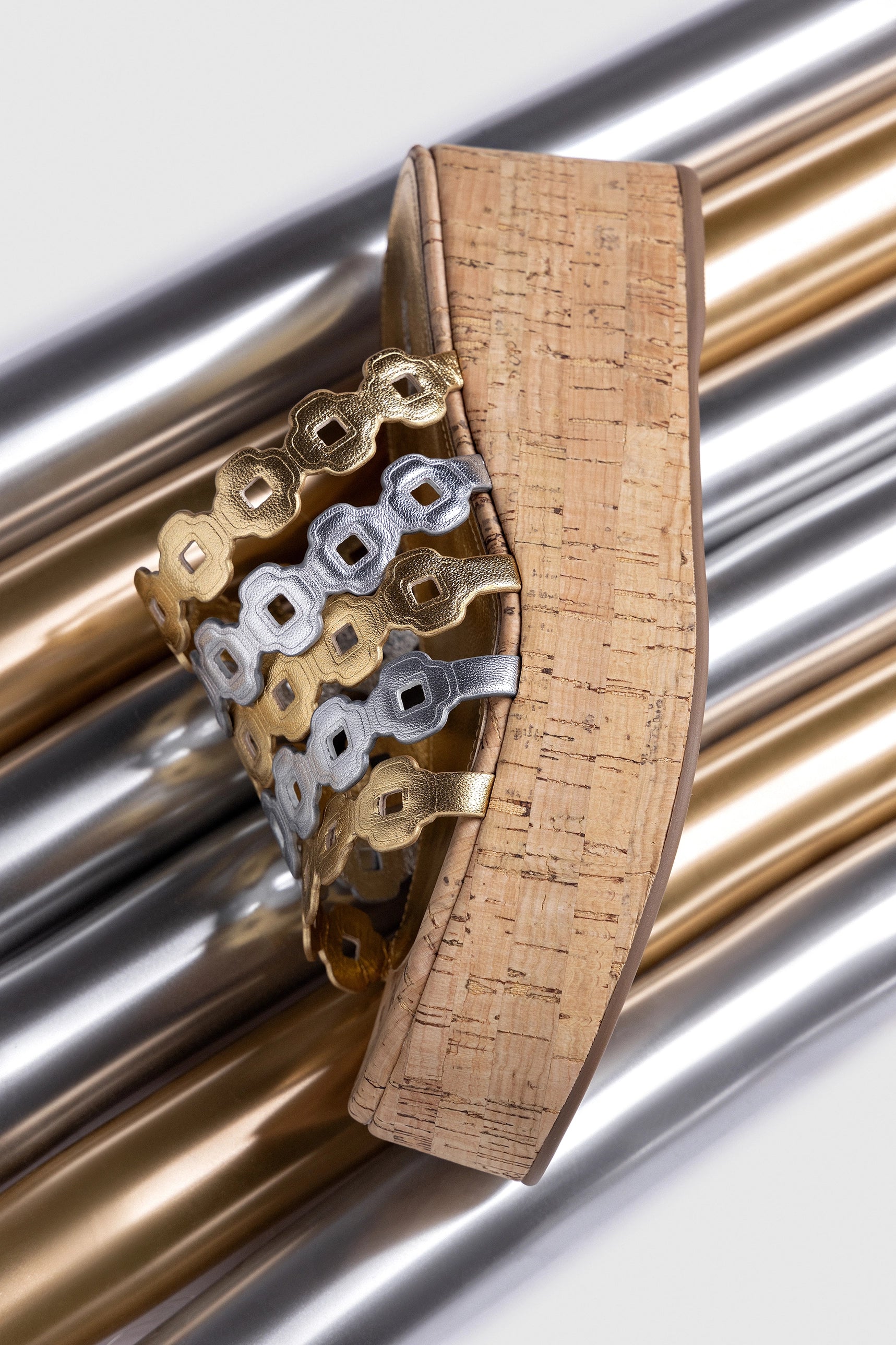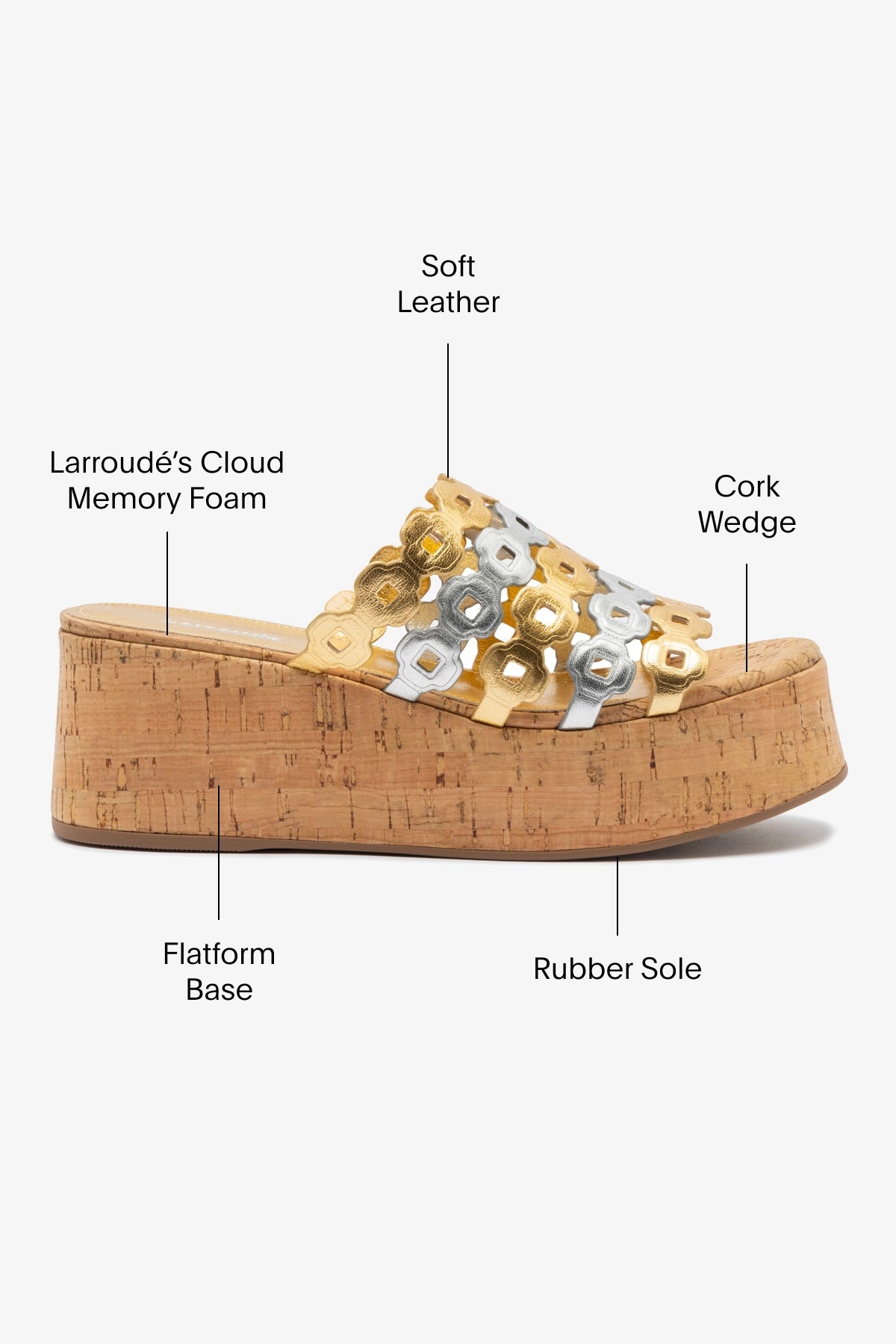 The Charli with a new two-tone metallic leather design is an all-time Summer favorite. With a comfortable slip-on mule shape, cork platform base, and rubber sole, these are both durable and perfect for any sun-soaked destination—the pair you'll want to slide on again and again as the temperatures rise.