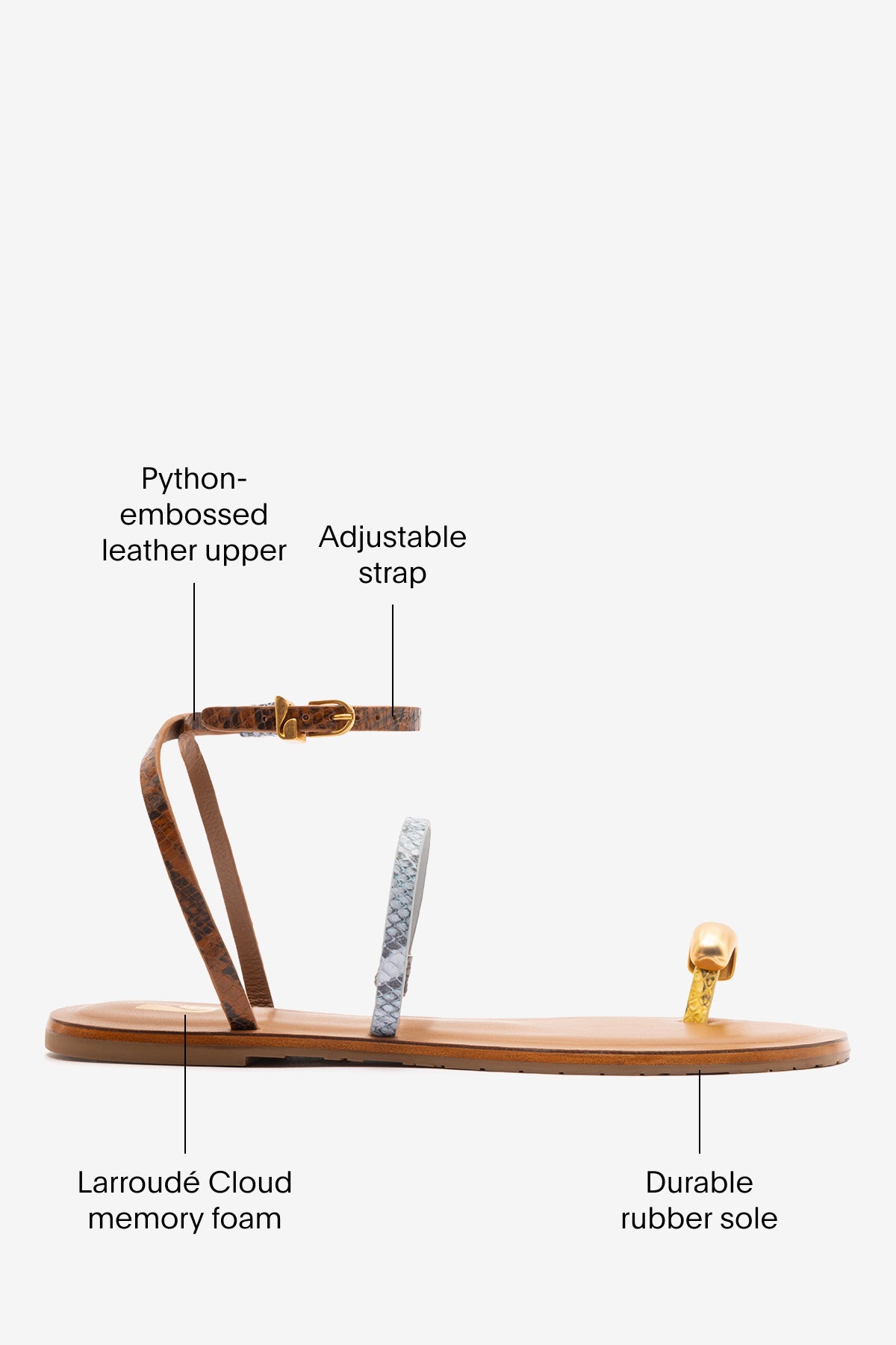Biarritz Flat Sandal In Lemonade, Maya and Oud Python Embossed Leather