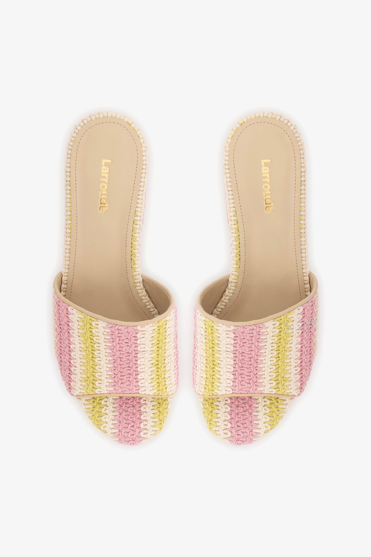 • Insole with Larroudé Cloud memory foam cushion and hot stamp logo