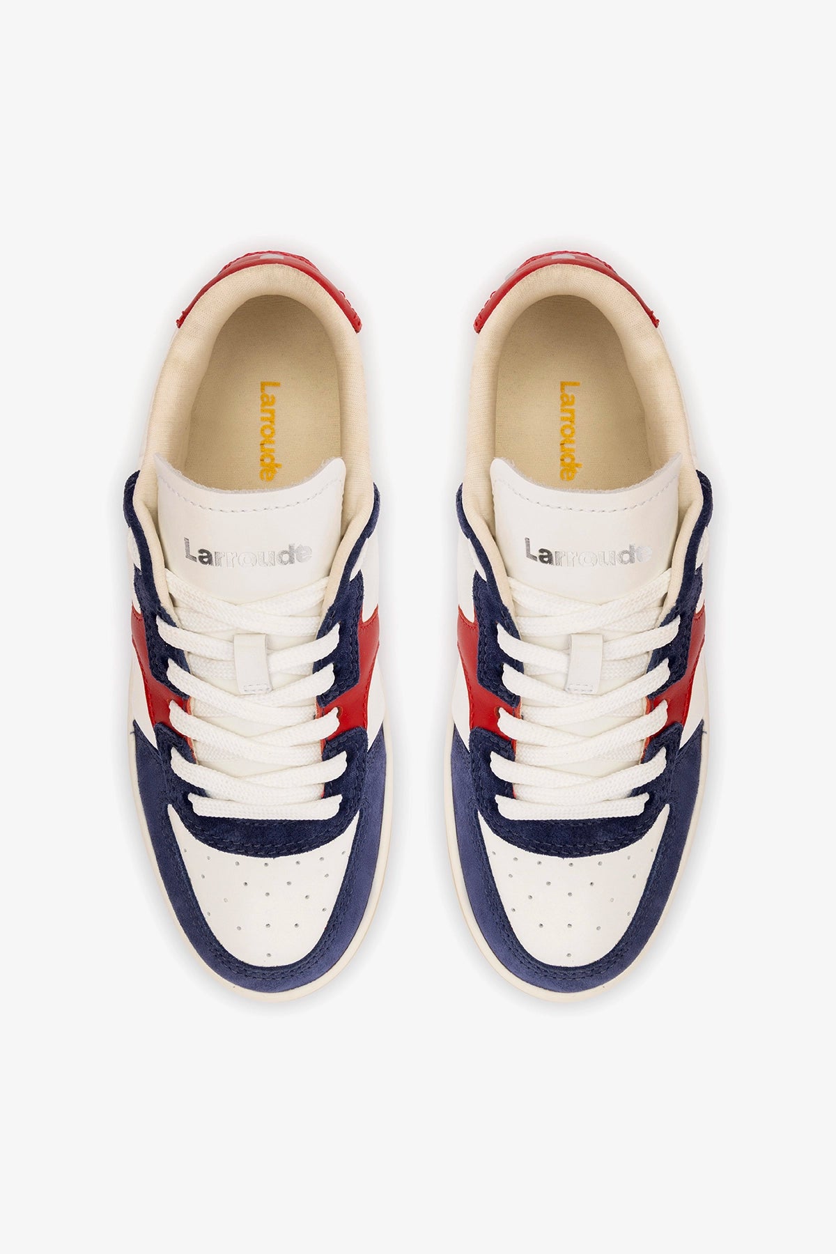 • Insole with Larroudé Cloud memory foam cushion and hot stamp logo