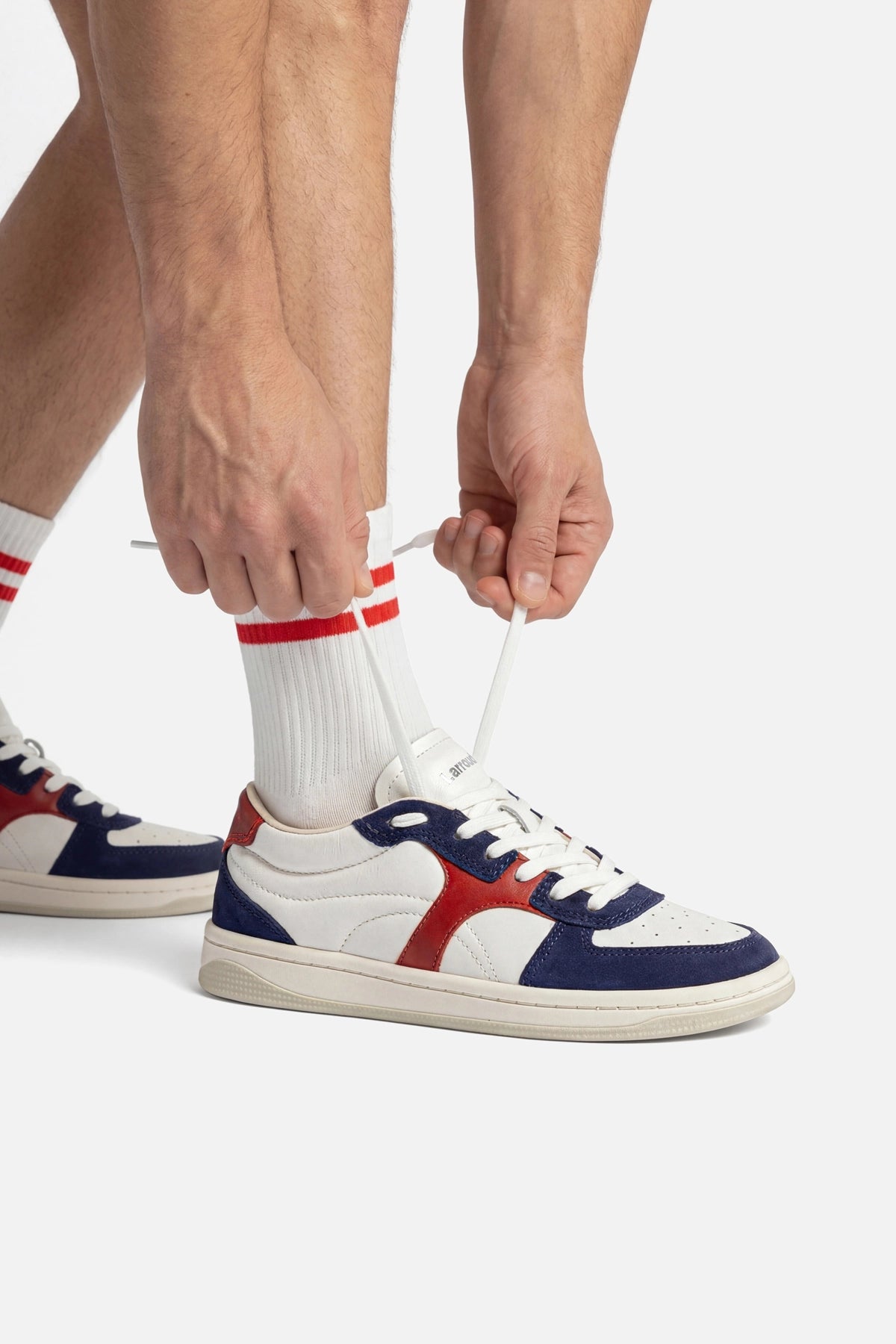 George Sneaker In White and Blood Red Leather and Navy Suede